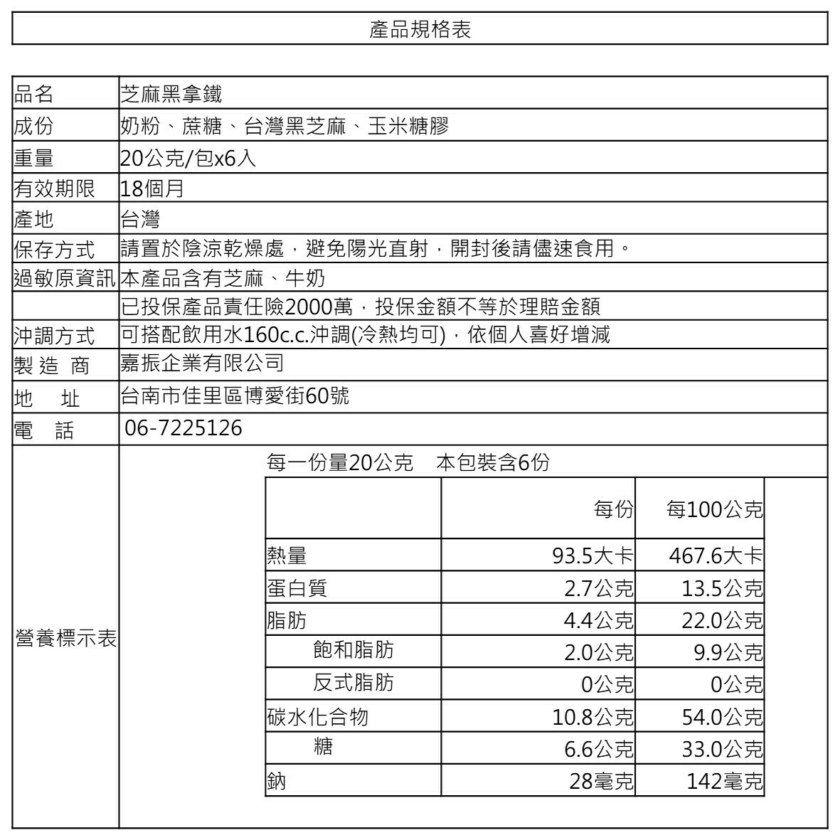 [黑拿鐵]臺灣黑芝麻搭配紐西蘭純淨的乳源,營養價值高。無添加奶精、香料、色素。
