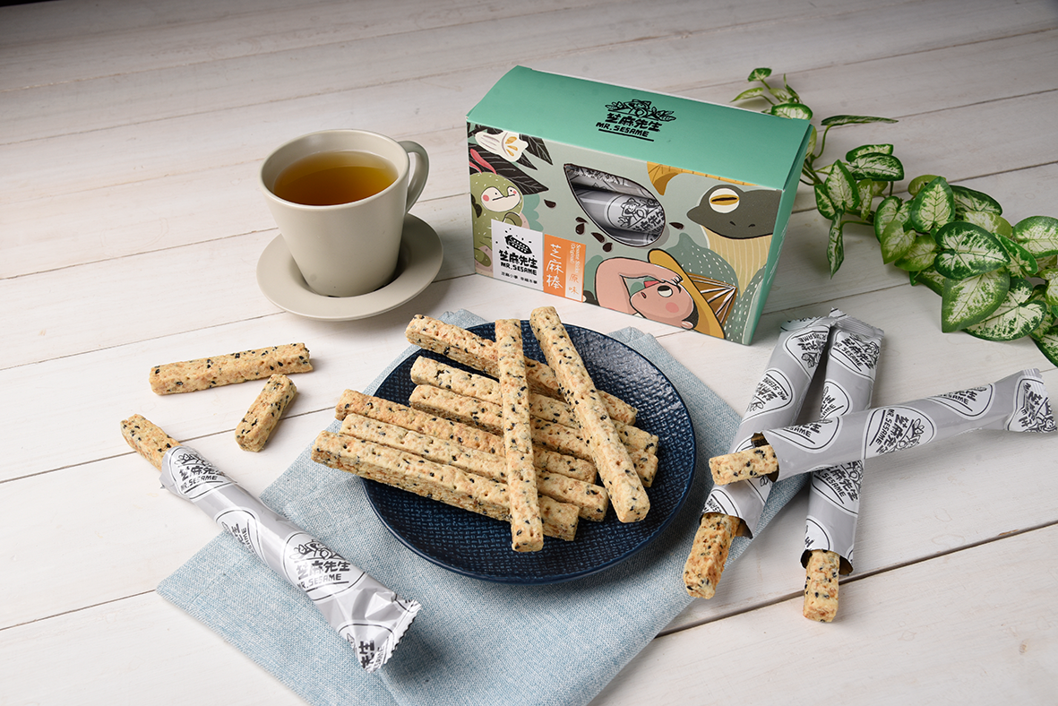 [芝麻棒]嚴選台灣本土黑芝麻,貼心製成酥脆可口小餅乾,長條小棒子形狀,單包裝方便不沾手。