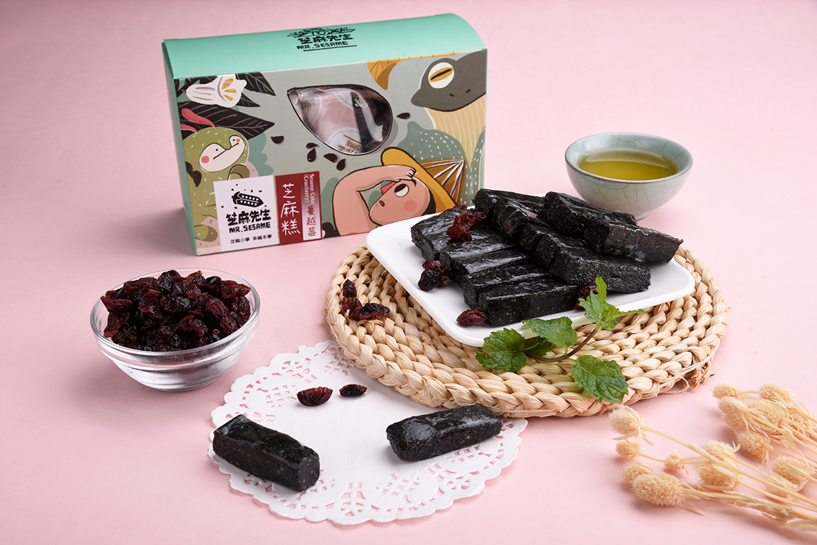 [芝麻糕.蔓越莓]嚴選台灣本土黑芝麻,與麥芽糖、海藻糖結合,減糖香甜不黏牙,單片包裝方便不沾手。(蔓越莓口味)是芝麻與蔓越莓結合酸酸甜甜好滋味!